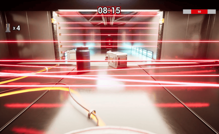 Your task: sneak through the facility, dodge dangerous lasers, and collect the illegal power sources to expose the company of their misdeeds.